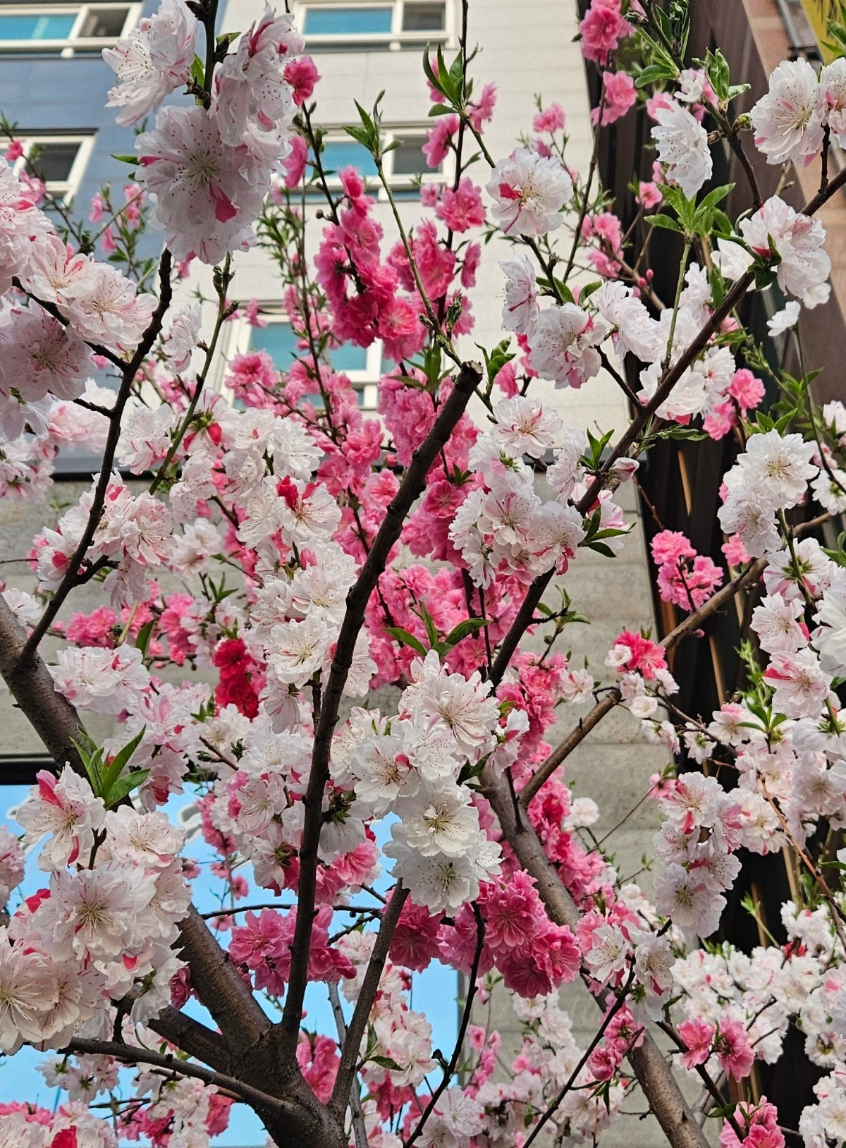 ‘삼색꽃복숭아’라고도 부르는 삼색도화는 붉은색, 흰색 그리고 붉은색과 흰색물감을 섞다 만듯한 오묘한 색감의 분홍색 꽃이 한 가지에 피는 희귀종으로, 지금도 공원이나 정원에 포인트를 주는 나무로 사랑받고 있다.