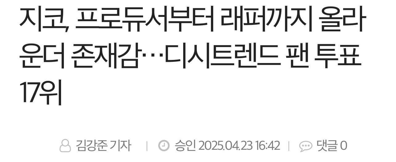 덕분에 1일 1지코 완. 다음엔 좋은소식으로 찾아오걸아.