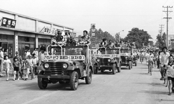 포상식이 끝난 그들은 민간인으로 처음으로 카퍼레이드로 영광을 이어갔습니다.