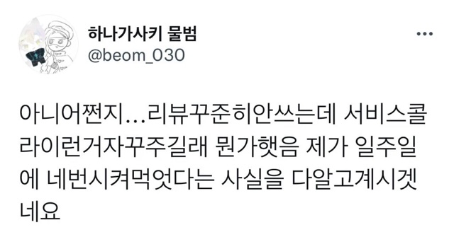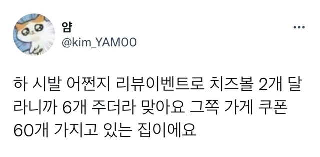 작성시간 25.04.28 와 나는 사장님이 리뷰이밴트 음료 누락됐다고 집으로 갖다주러도 와서 대면으로 받음;; 시킬때마다 콜라나 치즈볼같은거 보내줘 불닭소컵 시켰는데 큰걸로 보내주고 ㅜ쿠팡이츠로만 30번 시켜먹음;;