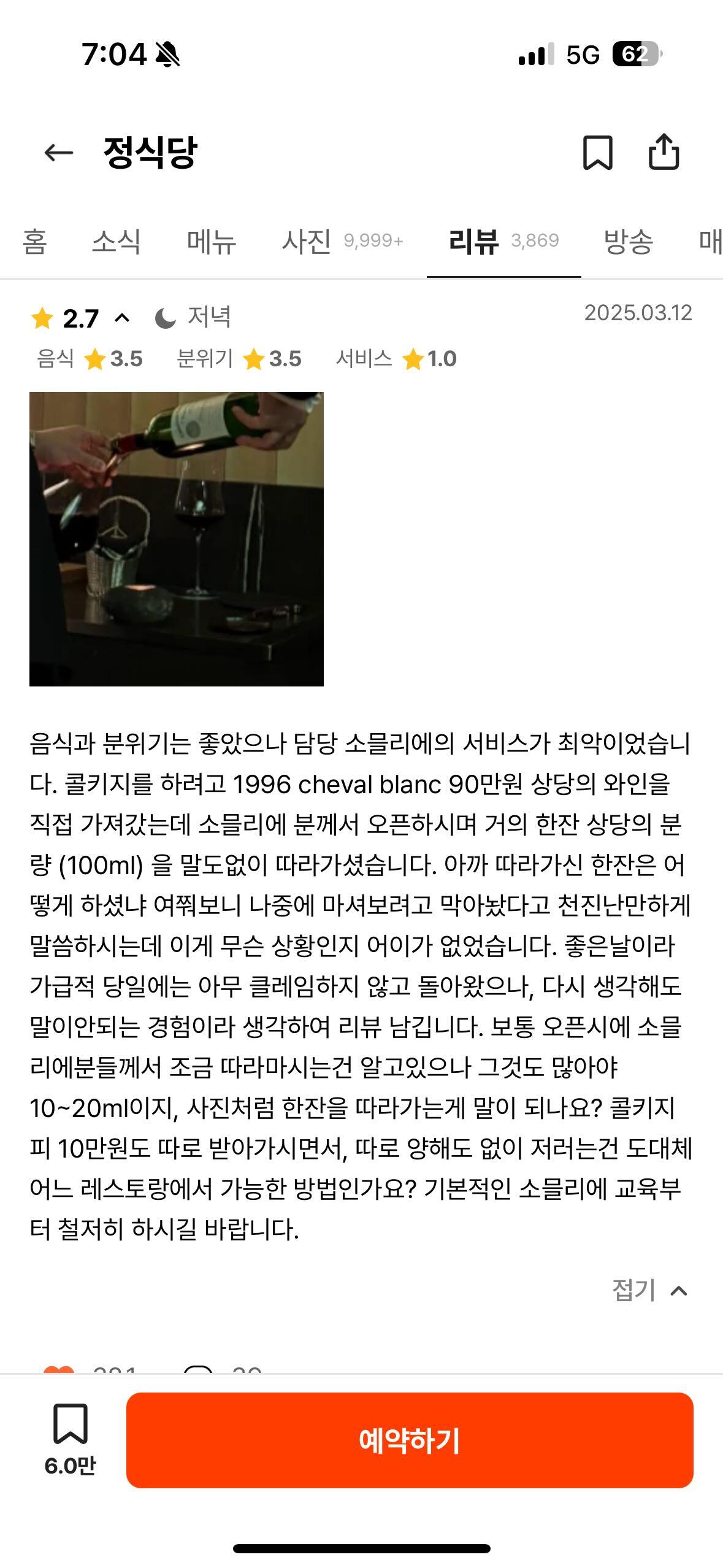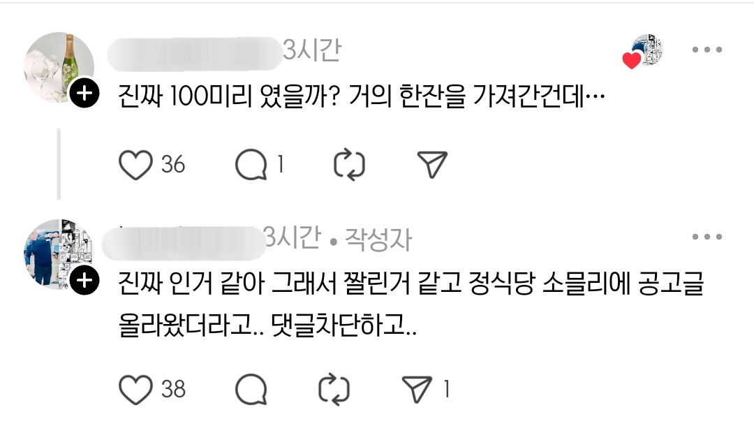 작성자돈 벌고싶다. 작성시간 25.04.25 저기 말고도 비슷하게 말없이 자주 따라마신 식당 최근에도 있었잖아..ㅋㅋㅋㅋㅋㅋ 와인 마시는 사람들 사이에서는 꽤 유명한 사건이었는데.. 아니 근데 미슐랭에서도 저러네...ㅋㅋㅋㅋㅋ