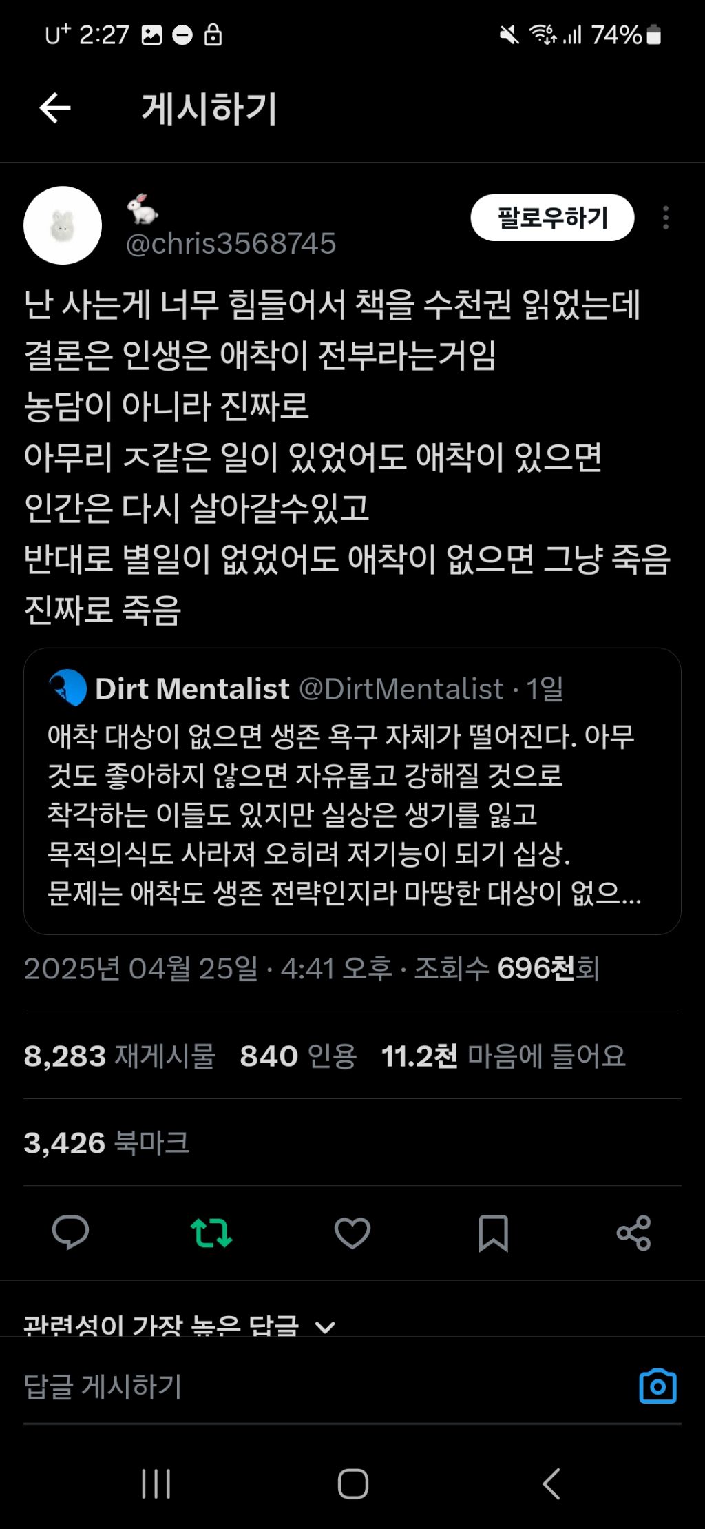 작성시간 25.04.27 그래서 가정을 이루고 애낳나보네…