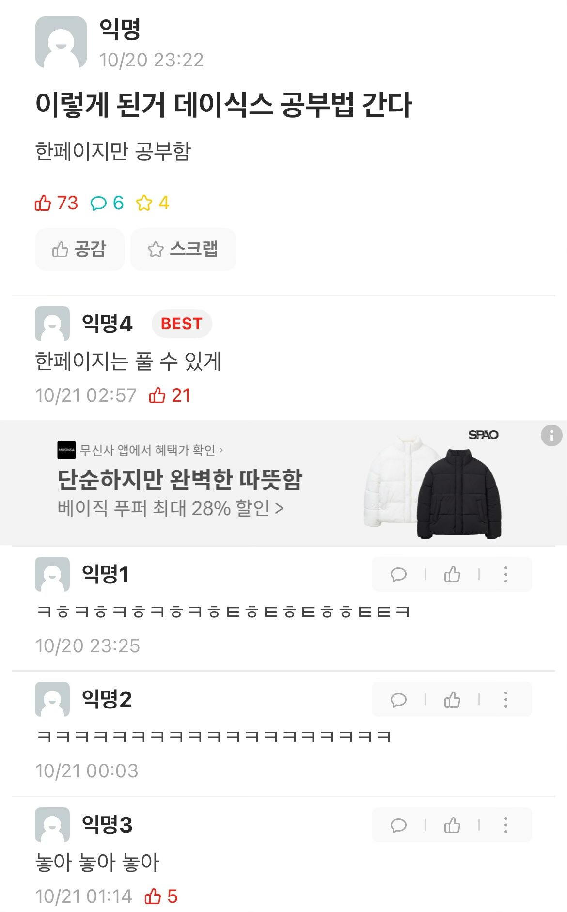 [스크랩] [흥미돋]에타에 올라온 데이식스 공부법 작성자파곱창|작성시간25.04.27|조회수41,387 목록 댓글 14 글자크기 작게가 글자크기 크게가 출처: https://theqoo.net/square/3452806895 ㅋㅋㅋㅋㅋㅋㅋㅋㅋㅋㅋㅋㅋㅋㅋㅋㅋ 다음검색 스크랩 원문 : *여성시대* 차분한 20대들의 알흠다운 공간 현재 게시글 추가 기능 열기 북마크 공유하기 신고 센터로 신고 댓글 댓글 14 댓글쓰기 답글쓰기 댓글 리스트 답댓글 작성자따봉고슴도치의 습격 | 작성시간 25.04.27 ㅁㅊ 이런생각어케햌ㅋㅋㅋㅋㅋㅋㅋㅋㅋㅋㅋㅋㅋㅋ 답댓글 작성자꼴릴레오꼴릴레이 | 작성시간 25.04.27 시발ㅋㅋㅋㅋㅋㅋㅋㅋㅋㅋㅋㅋㅋㅋ 작성자문프잼시민주당빅스안산나레츠고 | 작성시간 25.04.27 저런 거 쓸 시간에 공부나 하라고 ~~~~~~~~~~~~~~~ 그때가 좋을때라고 작성자어흥호랑이 | 작성시간 25.04.27 유쾌인간 너무 좋음 ㅠㅋㅋㅋ 작성자짱이 될 거야 | 작성시간 25.04.27 한페이지 ㅋㅋㅋㅋ 댓글 전체보기
