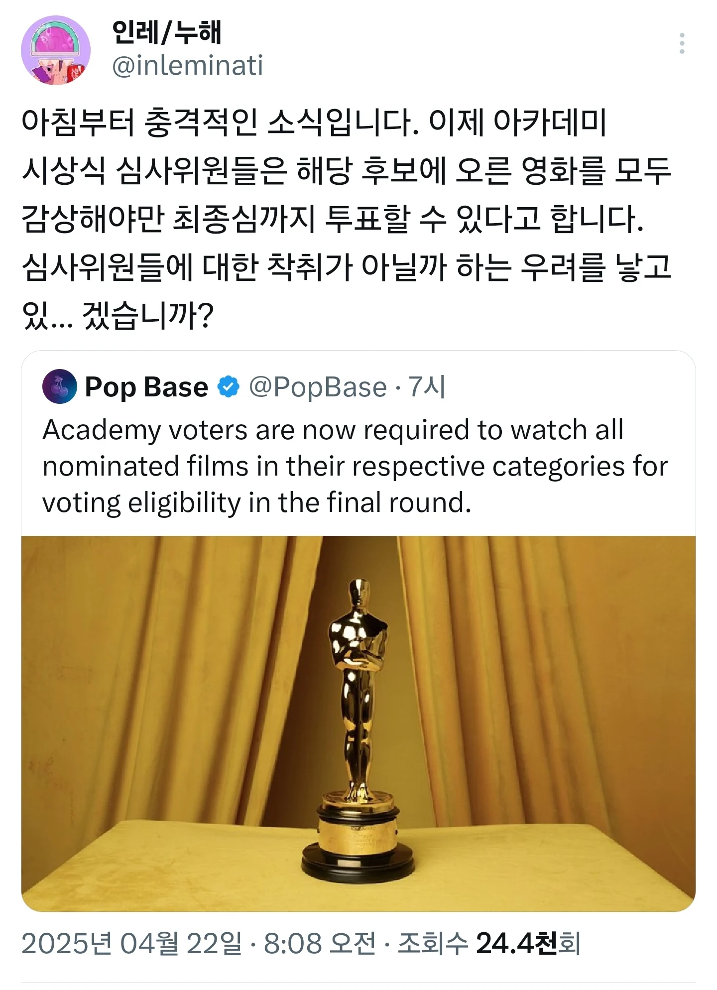 작성시간 25.04.28 안보고 뭘 평론하는데;;