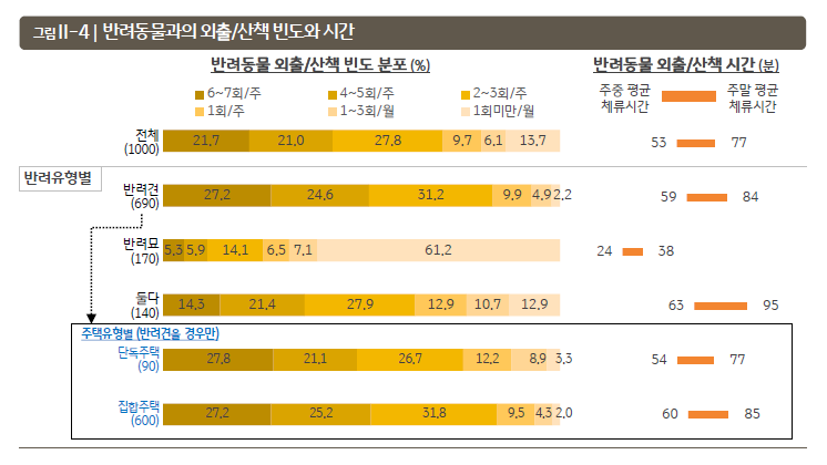 일주일 6-7회 산책 시켜주는 경우가 27.2%였어