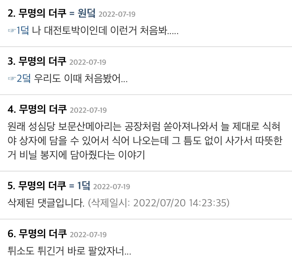 식혀서 박스에 담아서 파는 성심당의 보문산메아리를 털어가는 바람에 따뜻한 보문산메아리 등장