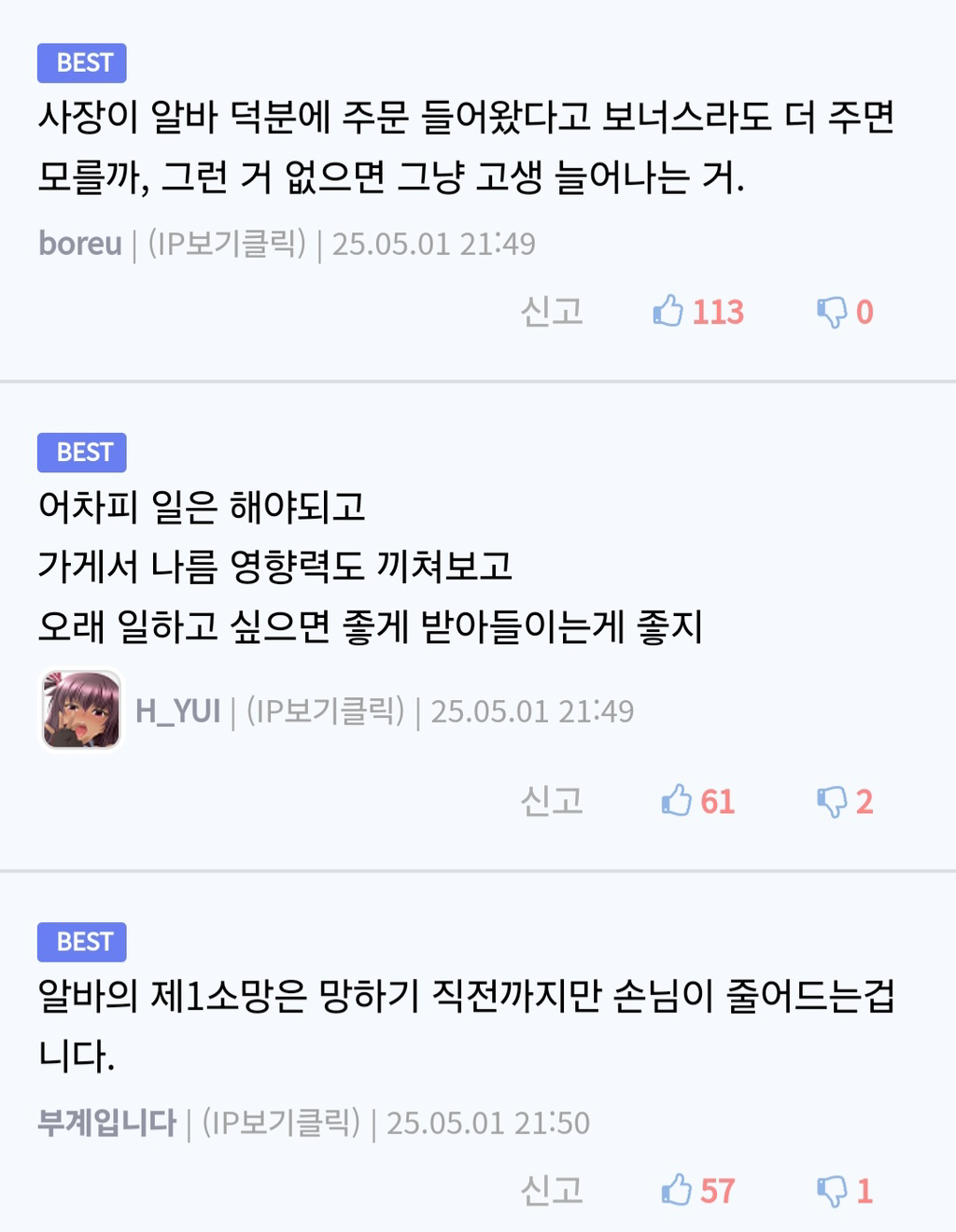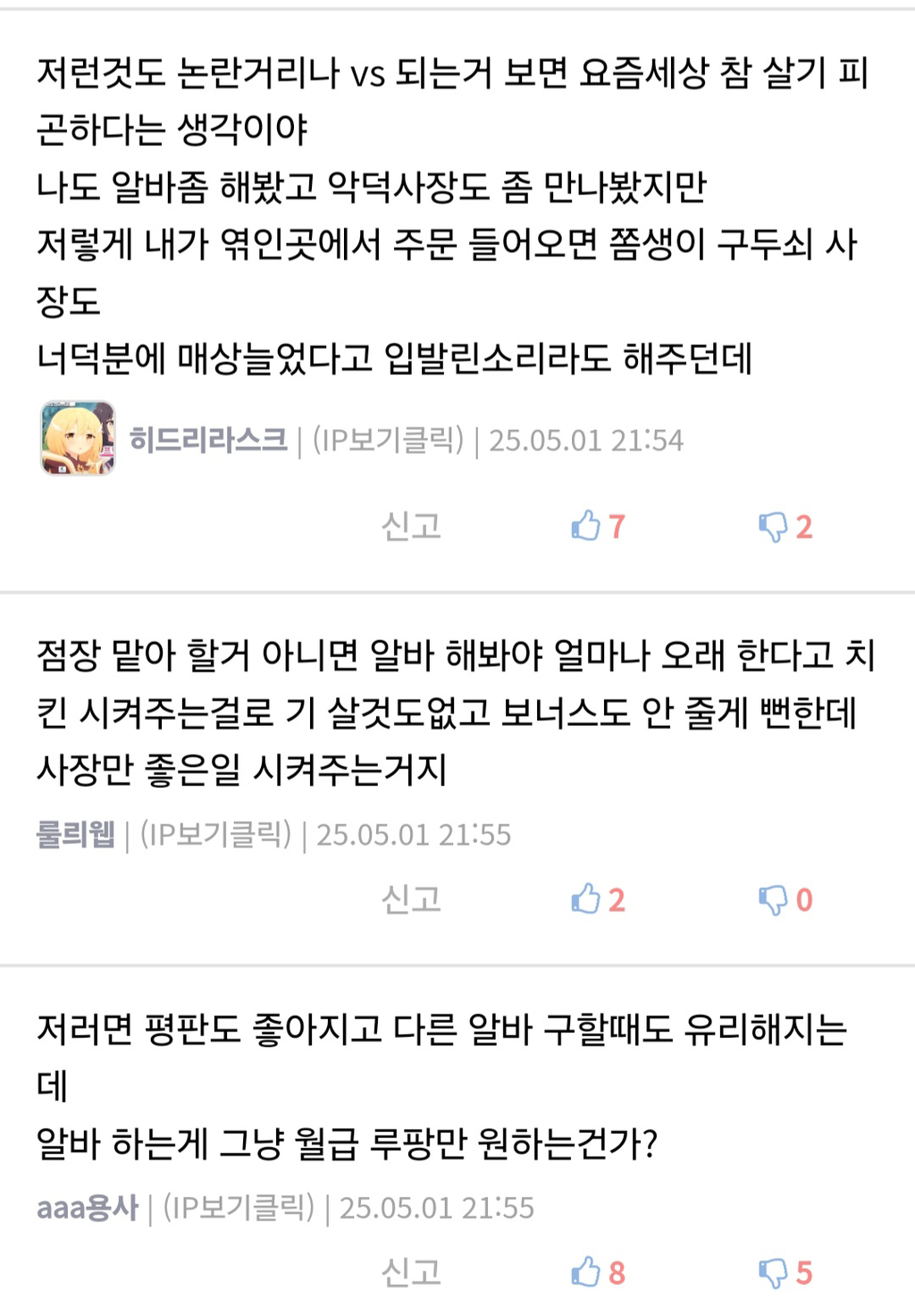 작성자초코송이사줄사람 작성시간 25.05.18 민폐는 아닌데 진짜 쥰내 힘들고 딱히 장기적인 이득도 없음… 그냥 그날 하루 땡큐 하고 끝이야 그것도 알면 다행이지 사장이 모를 확률이 더 높음..!