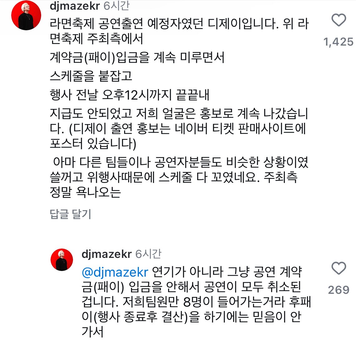 작성시간 25.05.05 뭐야 시에서 하는게 아니야? 저렇게 공식 축제마냥 이름 써도 되나? 블로그 찾아보니까 개판이던데.. 무슨 토핑 넣은 라면 끓여주는 것도 아니고 입장료 내고 가서 걍 라면 선택해서 자기가 끓여먹는거더라.. ㅋㅋㅋㅋㅋ 뭐임 뭐하는거여?