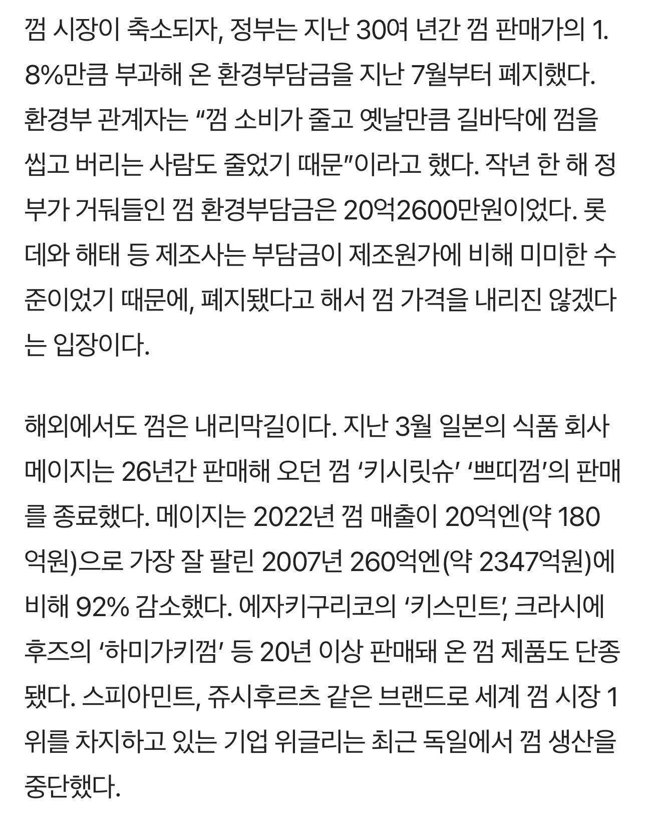 너무 안씹어서 문제도 안일어남 -> 환경부담금도 없앰