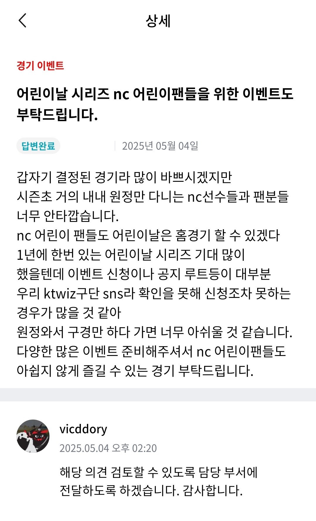 이벤트가 있었으면 좋겠다고 문의를 했다는데