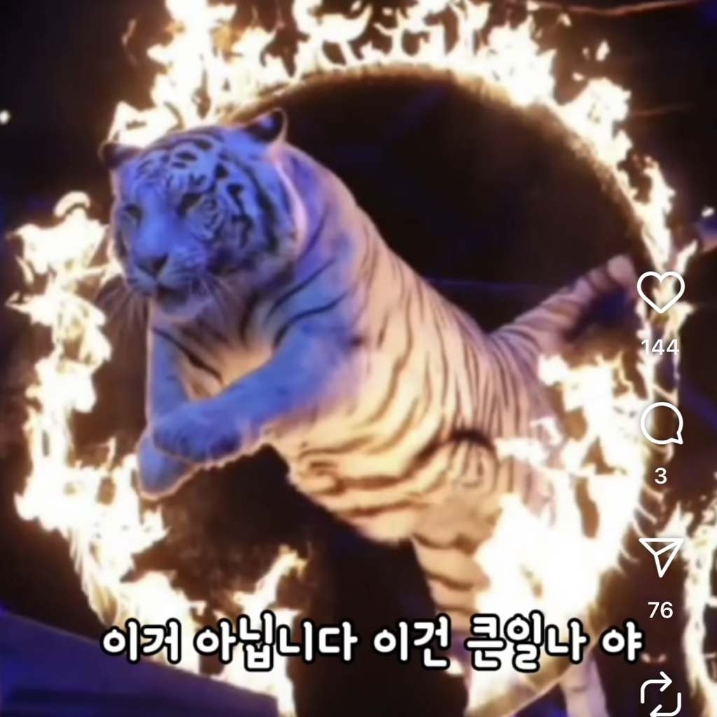 작성시간 25.05.06 어머 저거 호랑이 아니야 으아아앙가ㄱㄱ ㅋㅋㅋㅋ 목소리가ㅋㅋㅋㅋㅋ 개웃기네 진짜 ㅋㅋㅋ