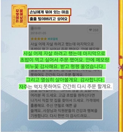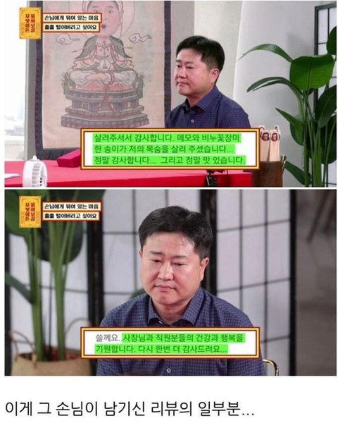 [스크랩] [흥미돋][무엇이든 물어보살] 자살 막은 리뷰 댓글로 유명한 초밥집 사장님 근황.jpg