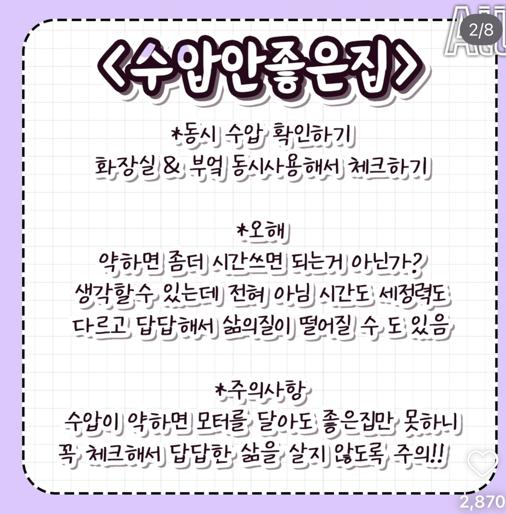 작성시간 25.05.06 다른건 몰라도 변기수압이 좀 애매한거같다하면 >부구< 올리는법 검색해서 조정해보는 방법도 있으니 참고해줘~