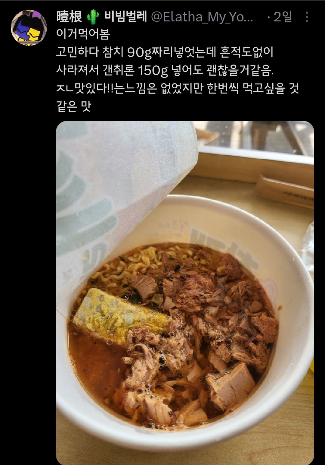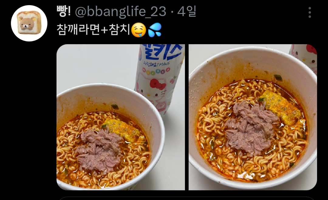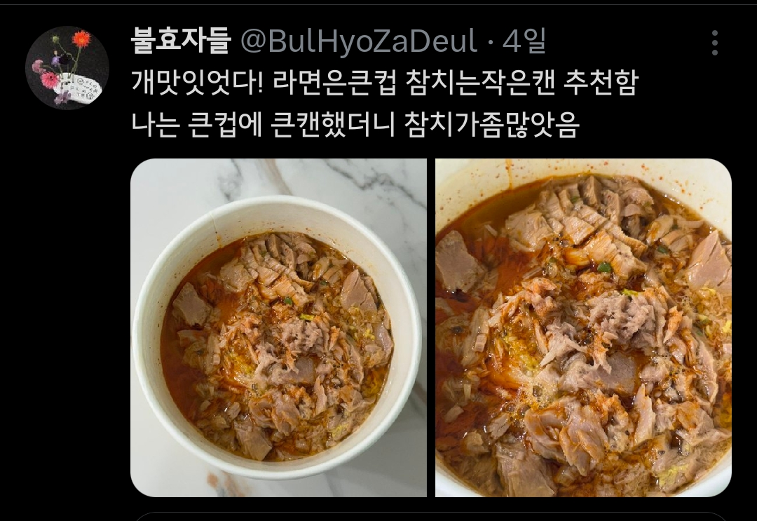 작성시간 25.05.06 신라면 컵라면에 넣어도 맛있는데 ㅜㅜㅜㅜ 참치는 모든 라면에 맛있음