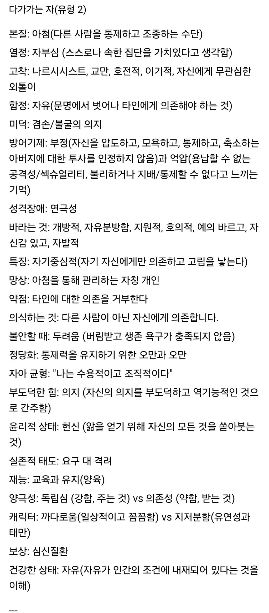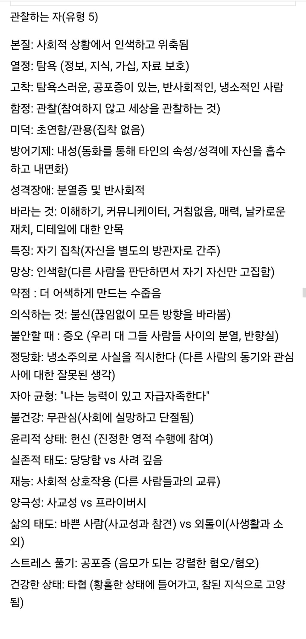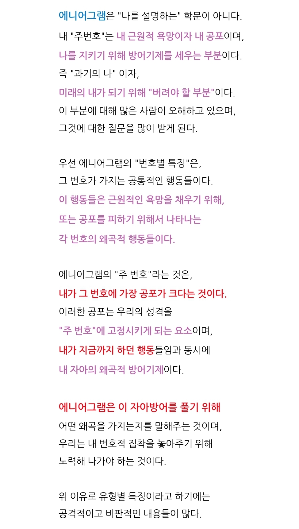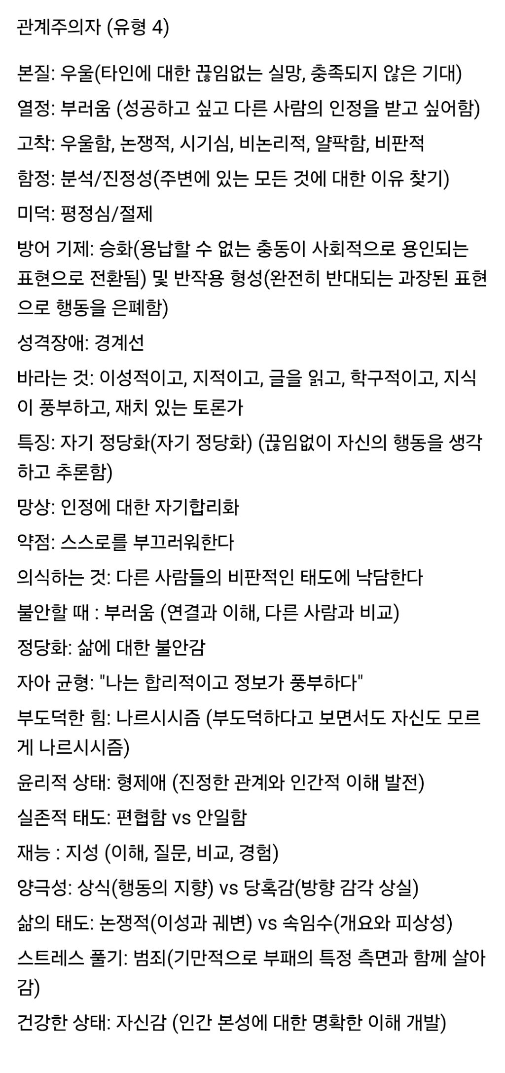 전부 에니어그램이 설명해줌.