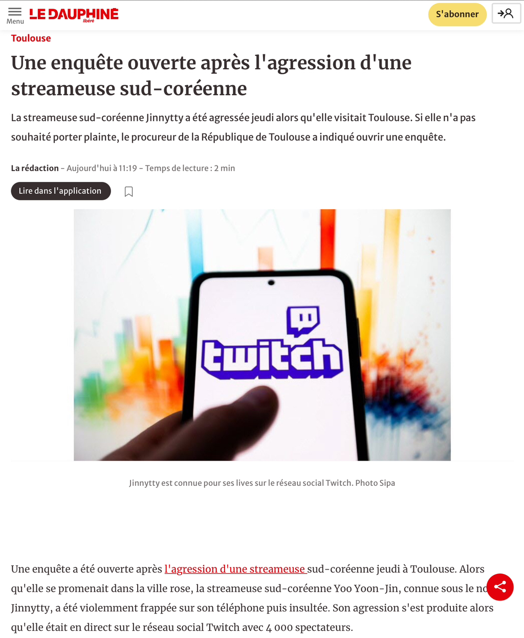 프랑스 툴루즈라는 도시에서 한 한국인 여자 인플루언서가 인터넷 방송하다가