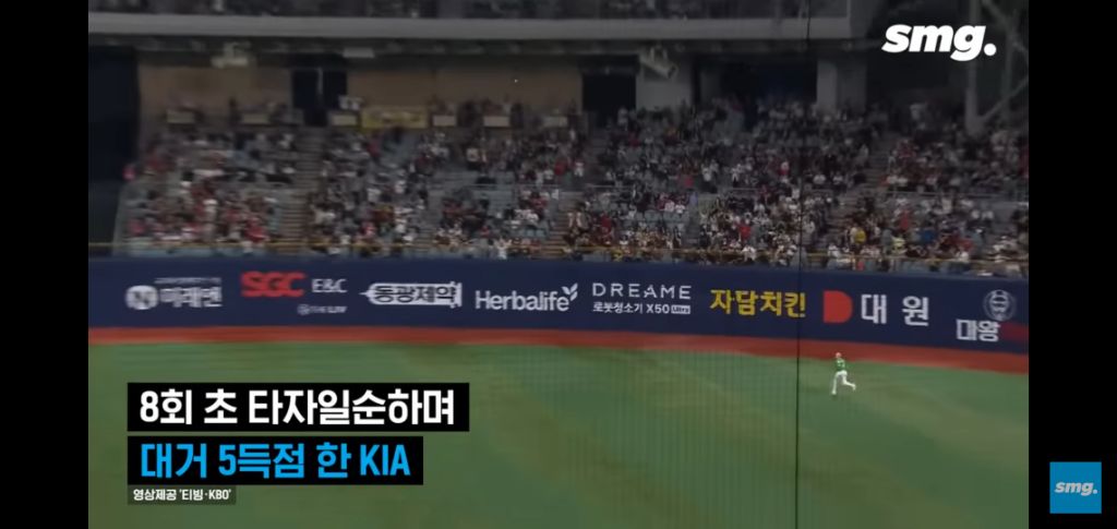 8회 초에 기아가 5점을 거두며 10대 3으로 크게 앞서고 있었음