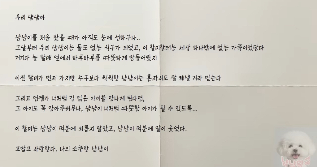 편지를 읽는 냠냠