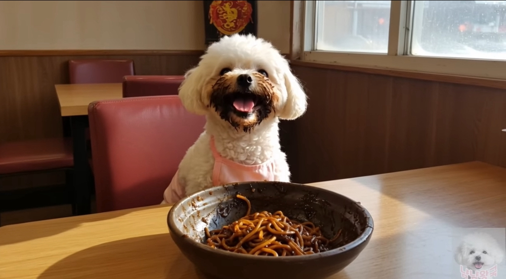짜장면이 그저 맛있는 냠냠이 (강아지는 원래는 짜장면 먹으면 안댐)