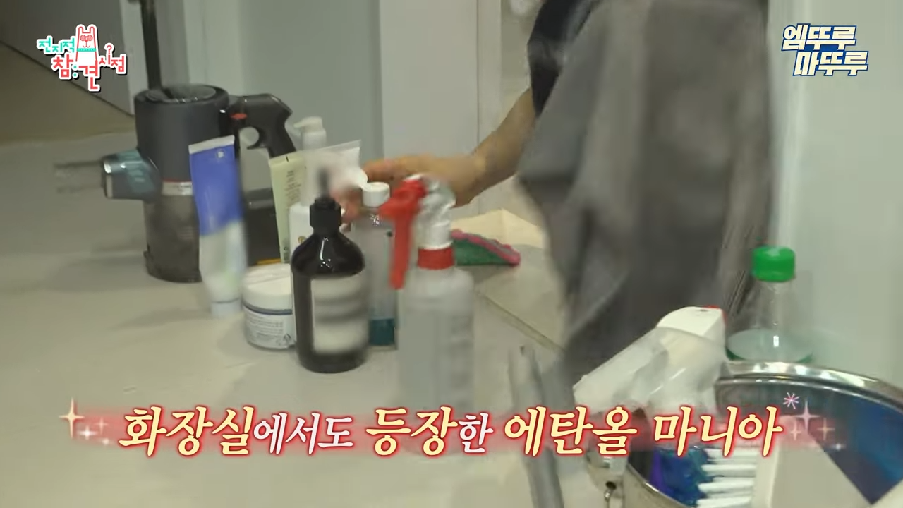 욕실에 있던 욕실 용품들 다 꺼내서 에탄올 뿌려서 손걸레로 닦기까지...