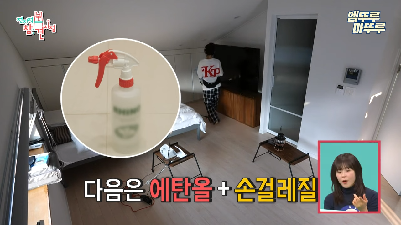 에탄올 스프레이 뿌리고 손걸레로 또 구석구석 닦기