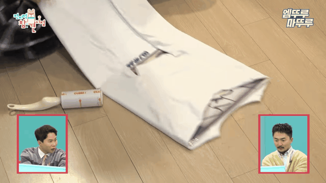 LP판으로 각잡아서 상의 접으면서 돌돌이로 먼지 제거 샥샥 마무리까지...