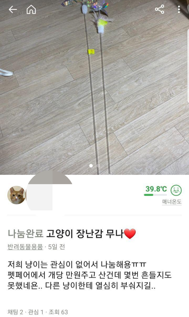 작성시간 25.05.13 울고앵,,,,역방쿠 당근도 아니고 무려 새거로 사줬는데도 2년째 노관심이라 제가 씁니다,,,,,,