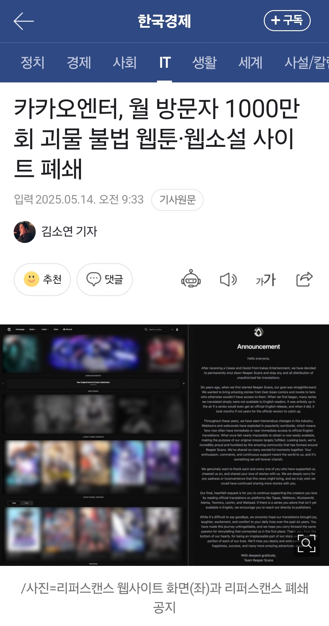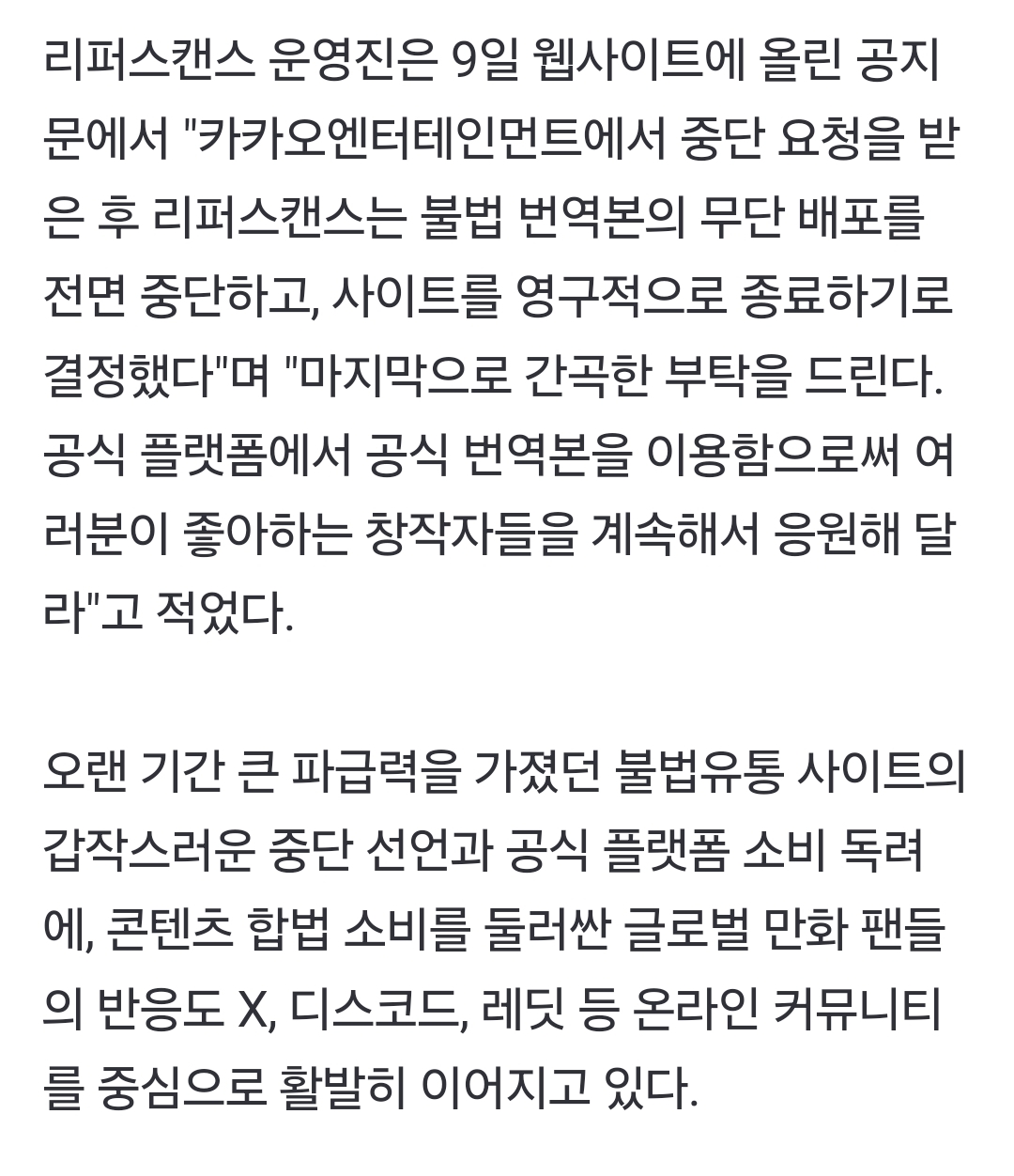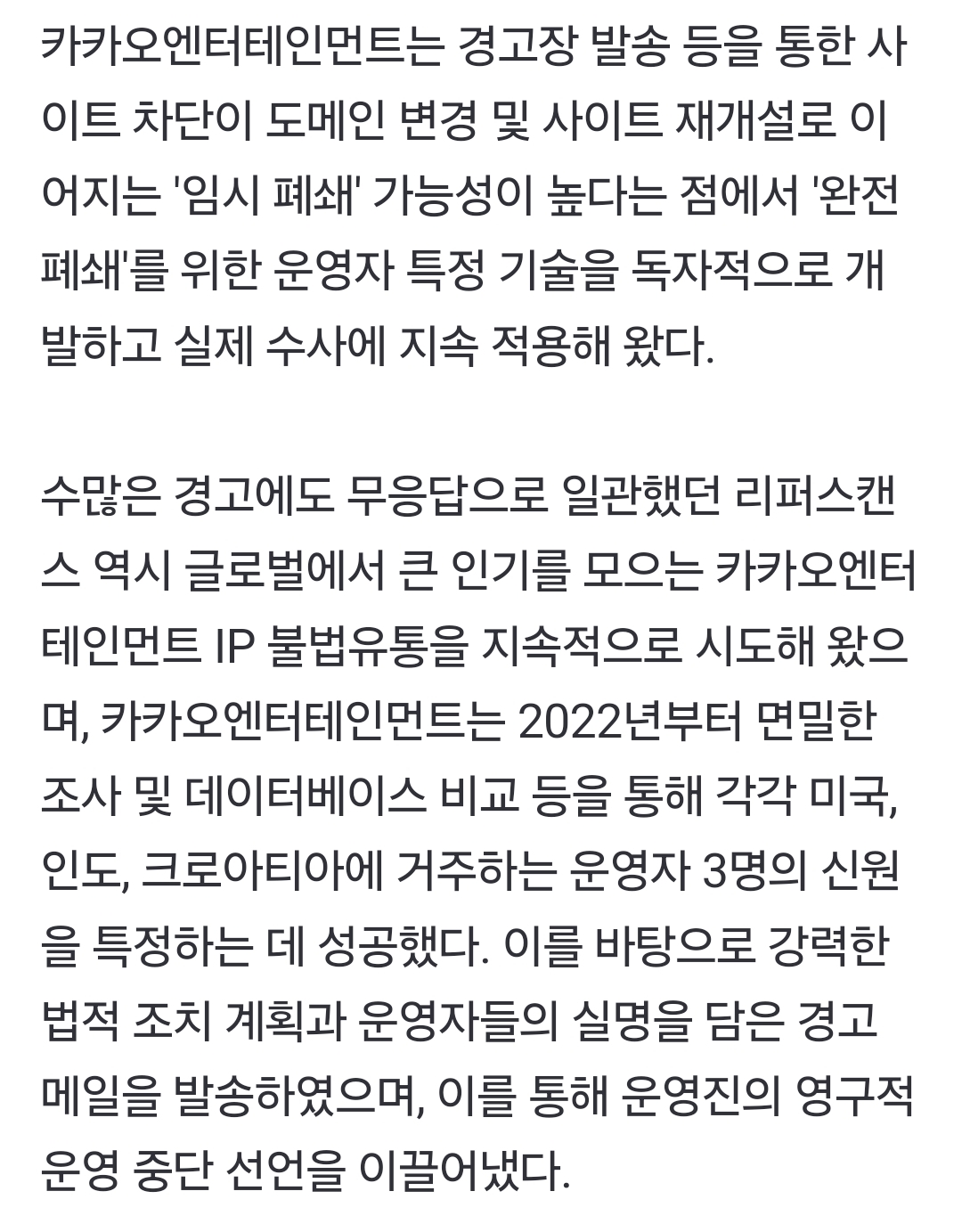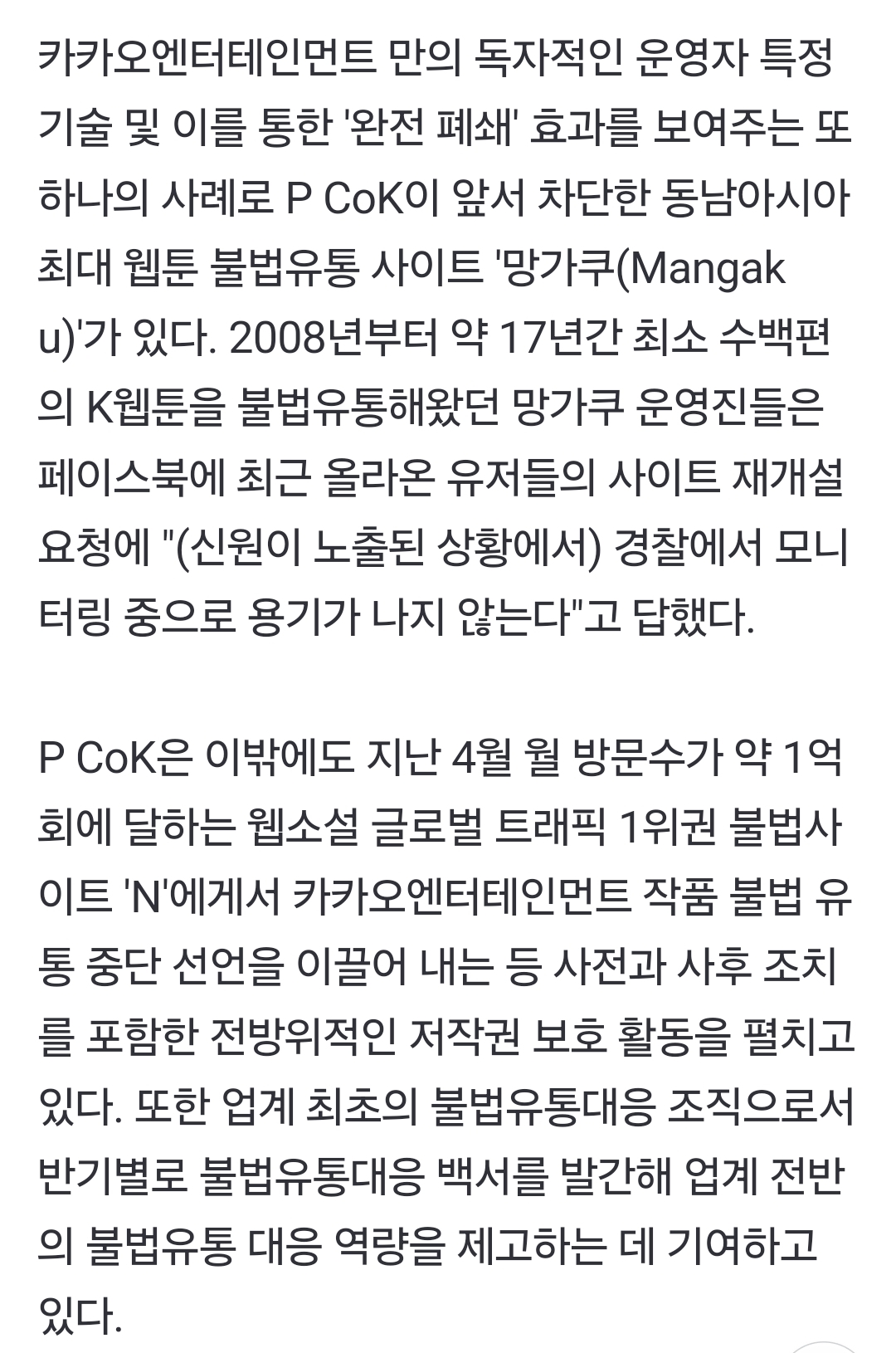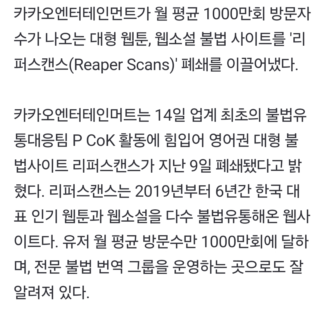 [여시뉴스데스크]카카오엔터, 월 방문자 1000만회 괴물 불법 웹툰·웹소설 사이트 폐쇄
