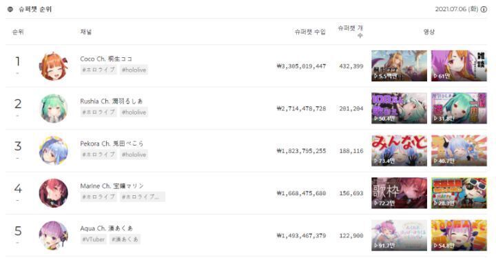 p.s. 버츄얼 유튜버들의 라이브 후원 예상 수입