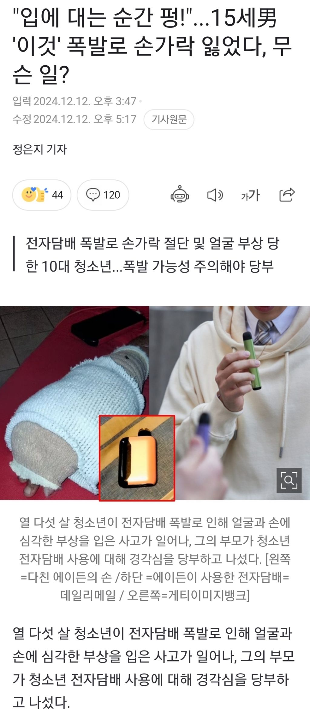 바로 전자담배 폭발 사고가 날 수 있다는 것