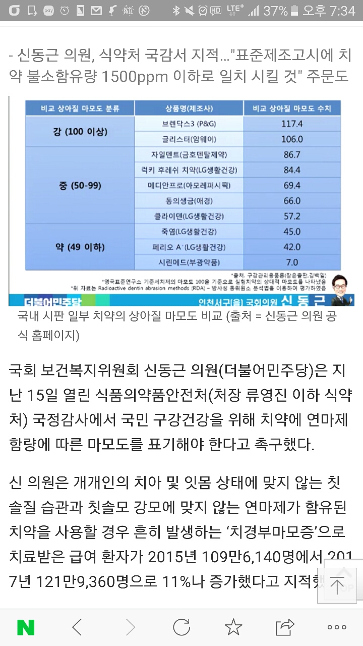 [스크랩] [흥미돋]치약 연마제 함량 따른 ‘마모도’ 표기해야(이 시린여시는 쓰는 치약 마모도 확인하고가 p&g브렌닥스 암웨이 글리스터)