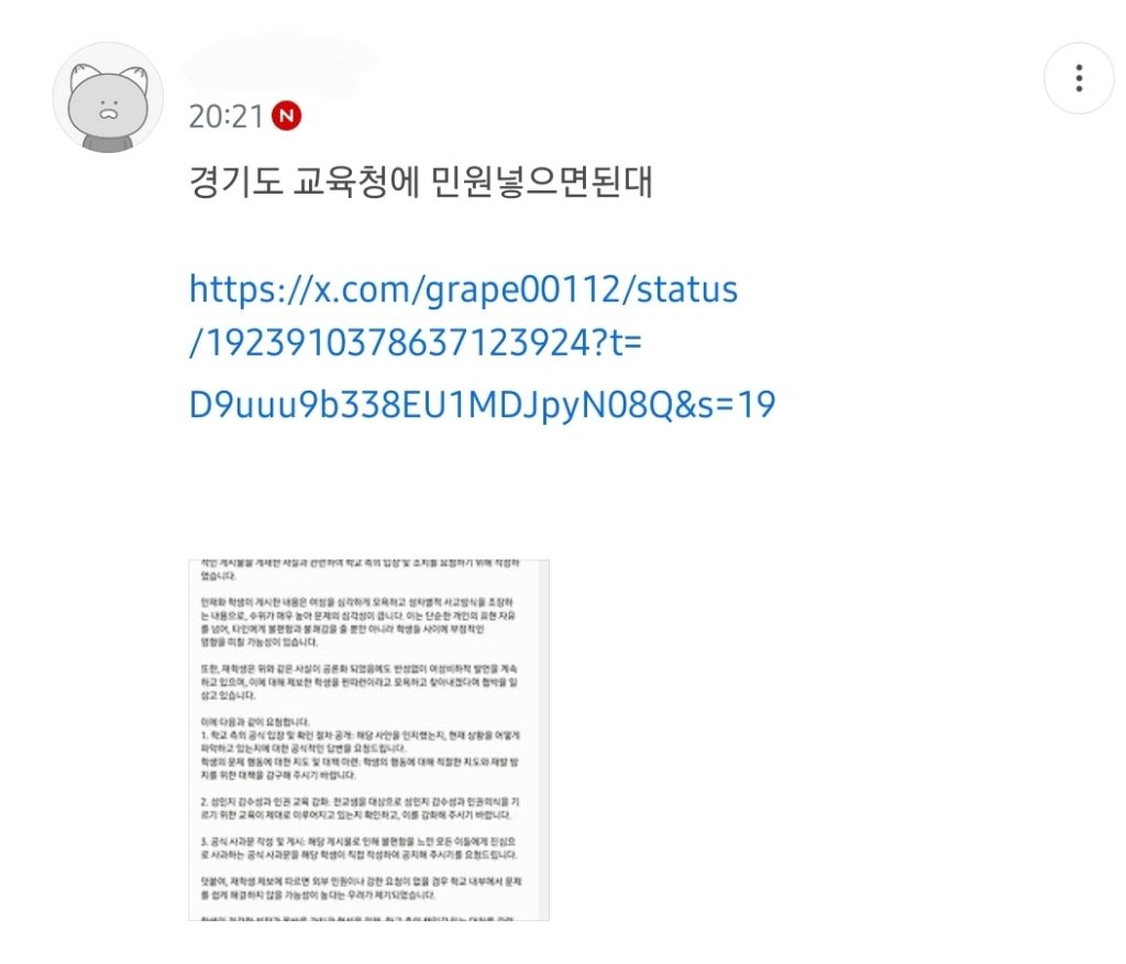 학생의 건강한 성장과 올바른 가치관 형성을 위해, 학교측의 책임감 있는 대처를 강력히 촉구합니다.