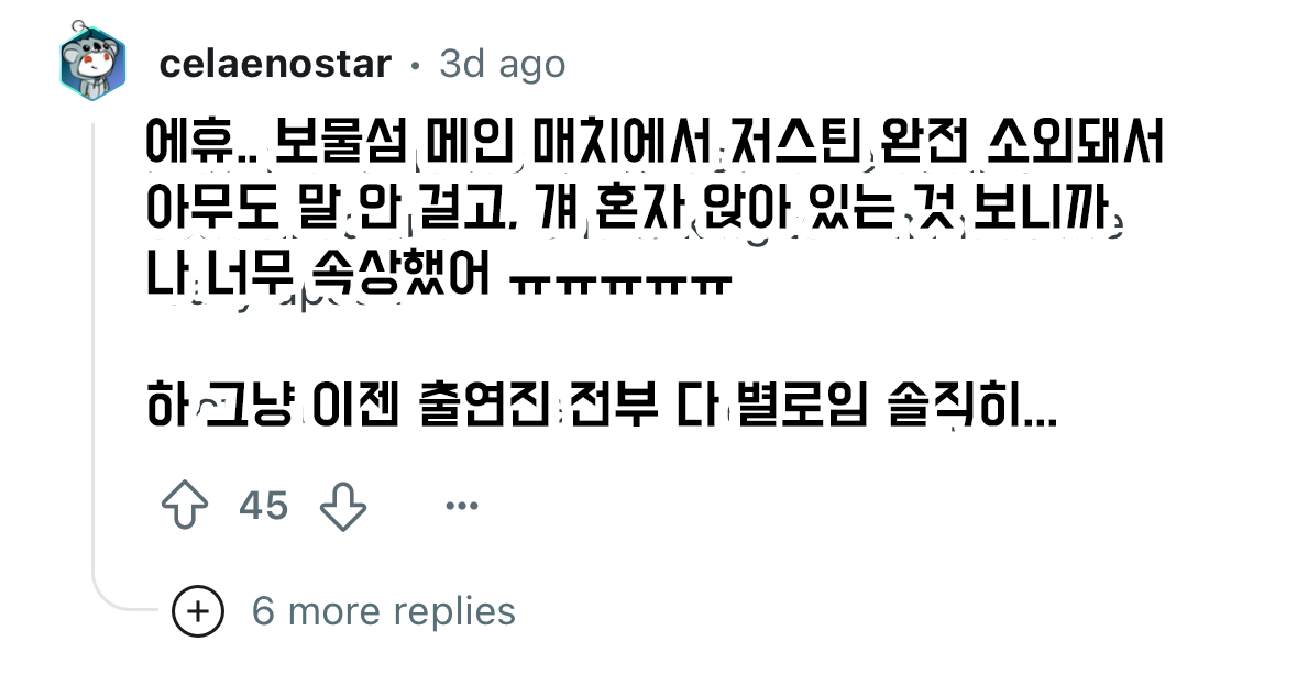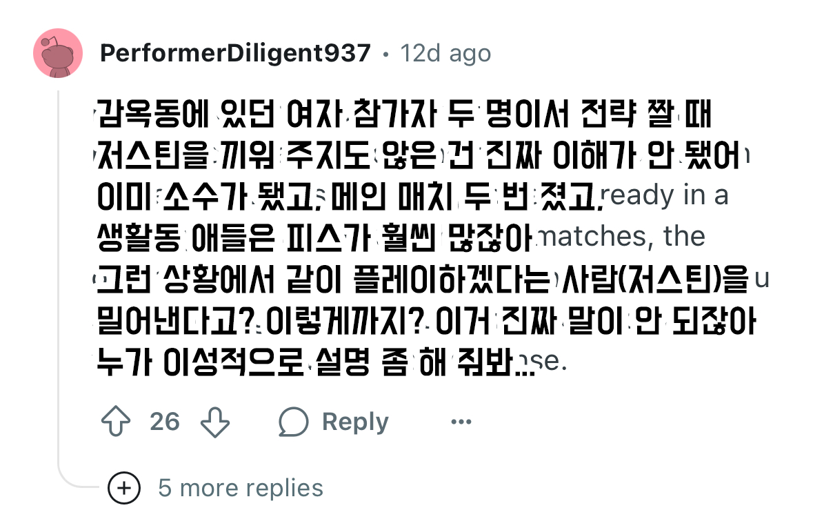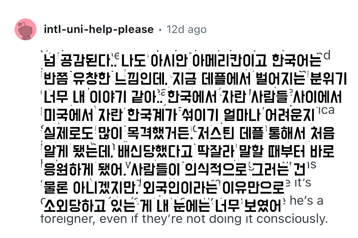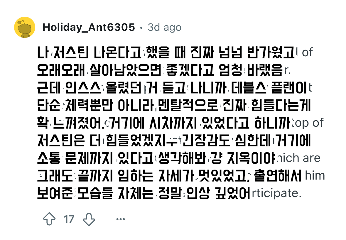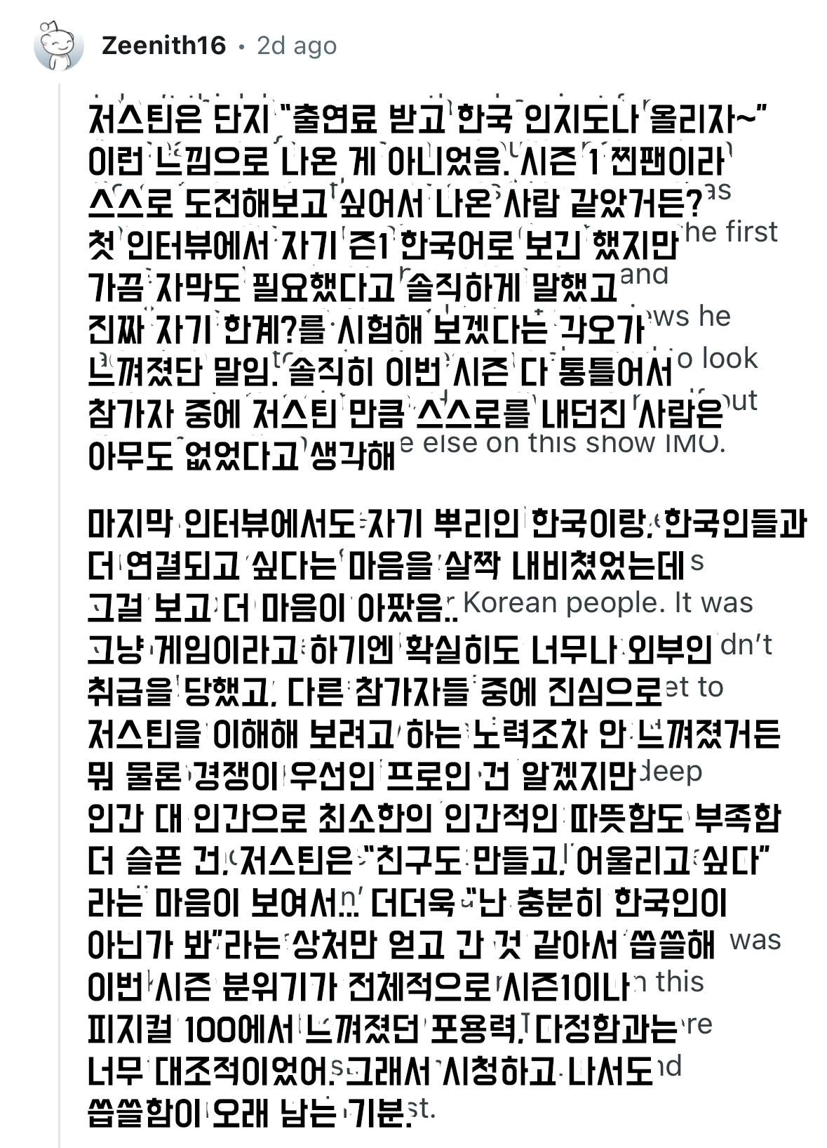 확실한 건 외국인들 눈에도 저스틴은 "혼자가 편한 사람"이 아니라 "배제된 외국인"으로 보인다는 거
