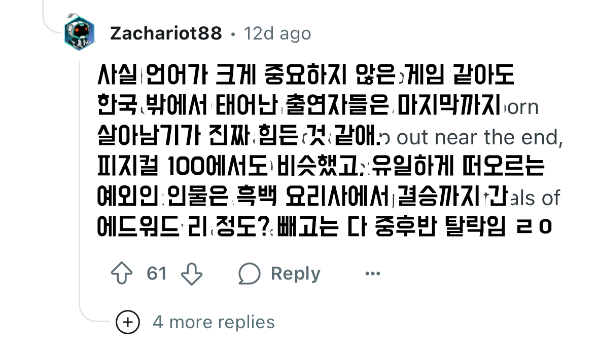 애초에 언어가 안 되면 프로그램 나와서는 안 됐다는 비판 댓글도 있었음