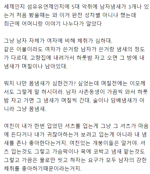 [칵.cxxx]남자들 냄새가 강하긴 한가보다 (토주의) 작성자카우플랫|작성시간25.05.23|조회수32,176 목록 댓글 332 글자크기 작게가 글자크기 크게가 출처: 여성시대 카우플랫 다음검색 현재 게시글 추가 기능 열기 북마크 공유하기 신고 센터로 신고 댓글 댓글 332 댓글쓰기 답글쓰기 댓글 리스트 작성자힘내야할때 | 작성시간 25.05.24 ㅅㅂ 진짜 토주의네 ㅡㅡ 작성자스트로베리 초콜릿 생크림 | 작성시간 25.05.24 드럽네 ㅅㅂ 작성자냐아냐아데이데이 | 작성시간 25.05.24 저새끼들 여친 안사겨봤고 드라마나 소설 존나 본듯 작성자하입뽀잉 | 작성시간 25.05.24 진심 빡빡 씻어라 ㅅㅂ 작성자스위치오프 | 작성시간 25.05.31 이불 ㄹㅇ임 진짜.. 댓글 전체보기