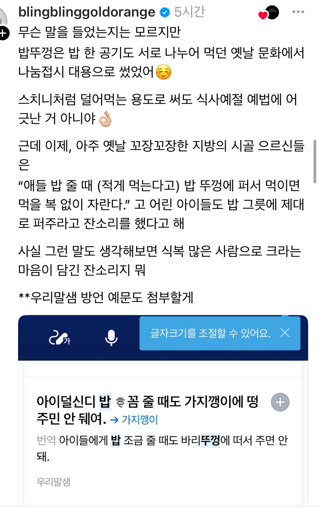 작성시간 25.05.26 ㅋㅋㅋㅋㅋㅋ이러다가 숟가락 젓가락 쓰는것도 예의아니라고 하궛어요,,,,,,