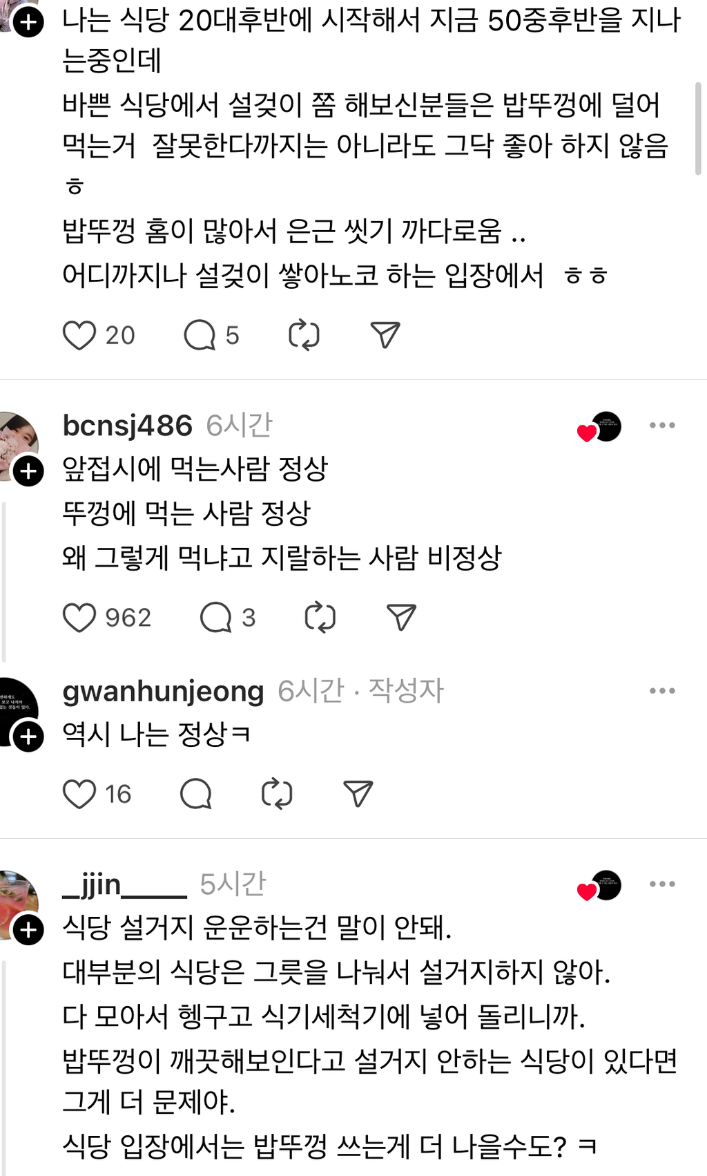 작성시간 25.05.26 밥뚜껑에 홈이 어딨지? 나 십몇년전 학생 때 알바하던 시절에도 식세기 있었는데 저 분은 어느 시절 얘길하고 있는걸까
