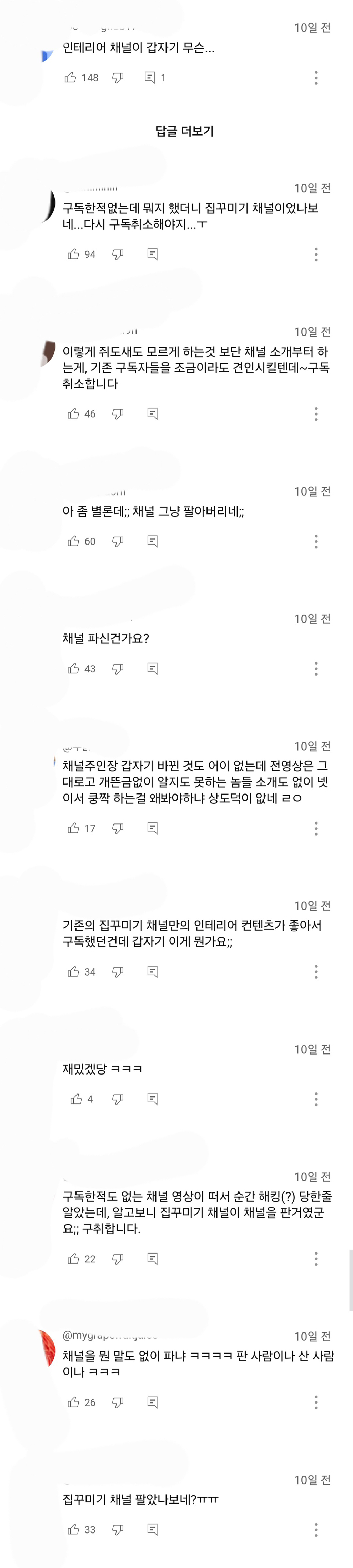 당연히 구독자들 반응 안좋음
