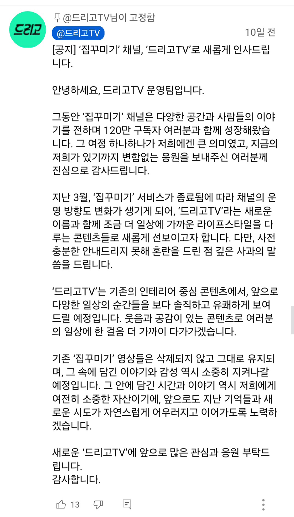 집꾸미기 채널이 바뀐거라함...