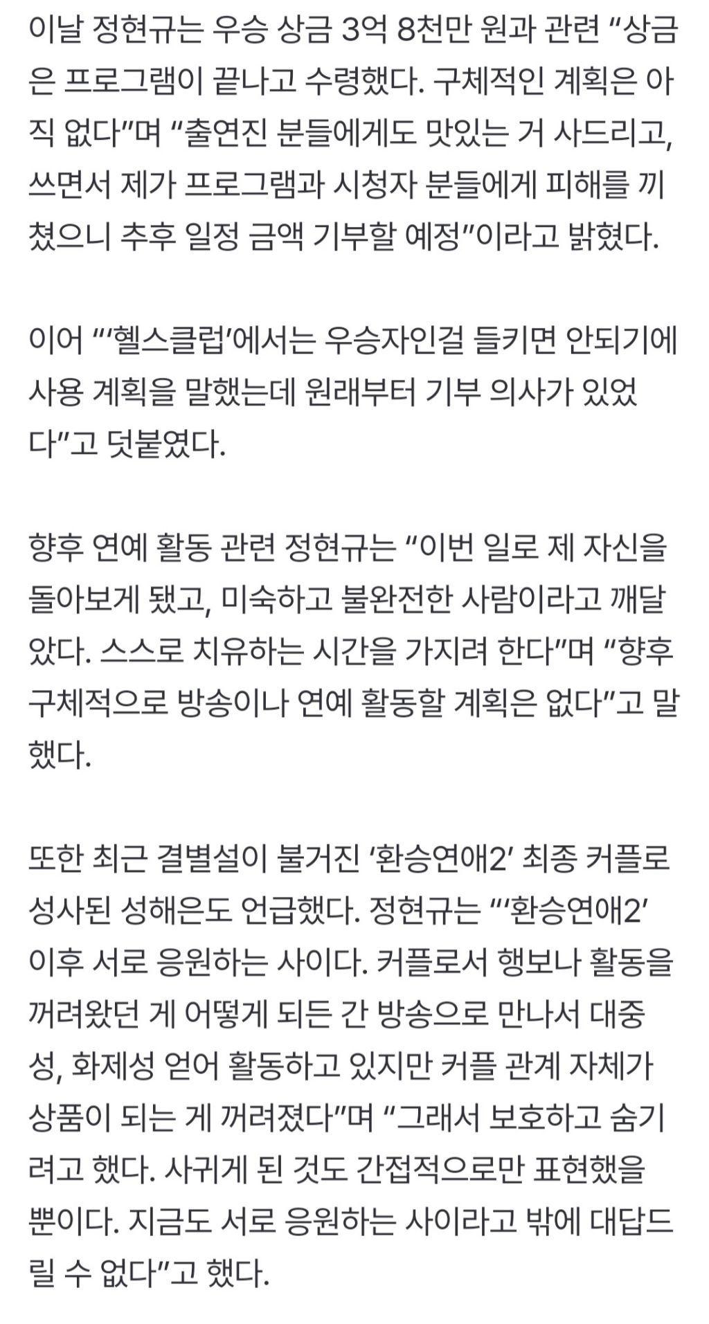 [여시뉴스데스크]‘데블스 플랜2’ 정현규 “성해은, 서로 응원하는 사이…우승 상금은 기부할 것”