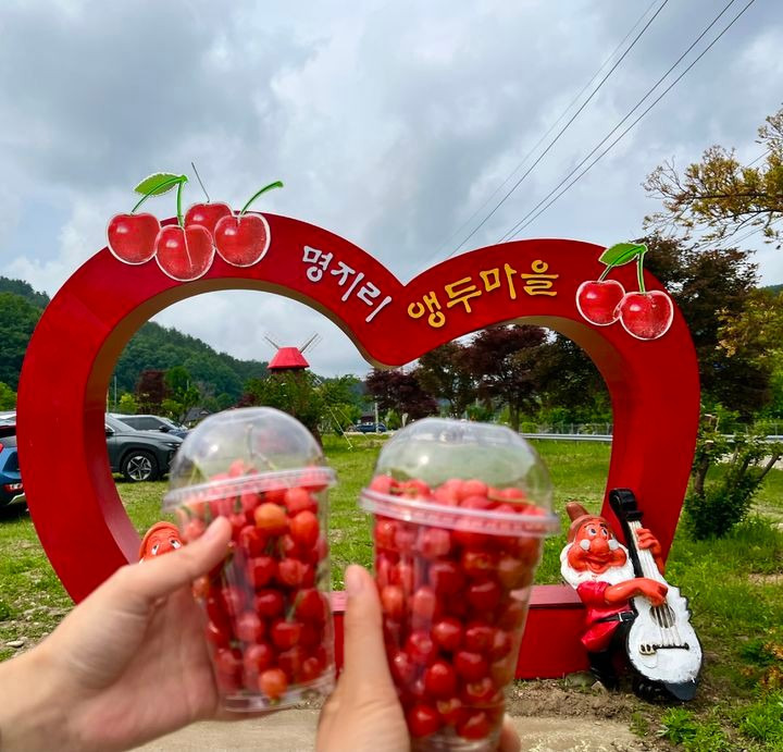 [양양=뉴시스] 양양 명지리 앵두사랑 앵두축제장에 마련된 포토존.(사진=양양군 제공)photo@newsis.com *재판매 및 DB 금지