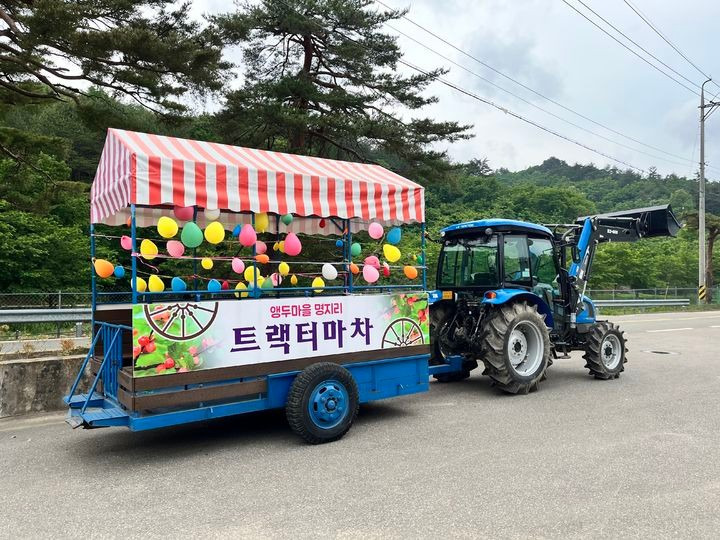 [양양=뉴시스] 양양 명지리 앵두사랑 앵두축제장에 마련된 트렉터 마차.(사진=양양군 제공)photo@newsis.com *재판매 및 DB 금지