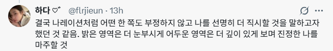 👆🏻내 안의 밝음과 어두움이 마주하는 순간에 깔리는 가사가 이 두 줄이라니