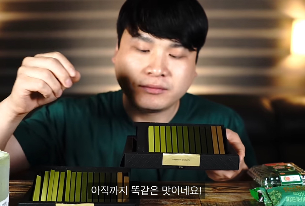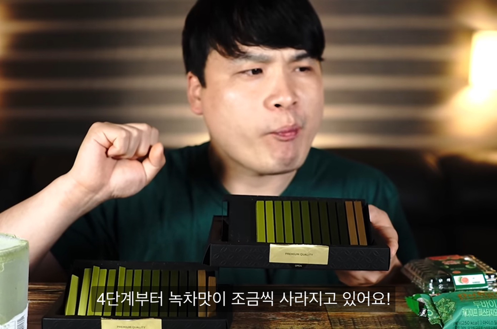 일본 녹차초콜렛인데 저거 2개씩 같은 맛 단계거든?