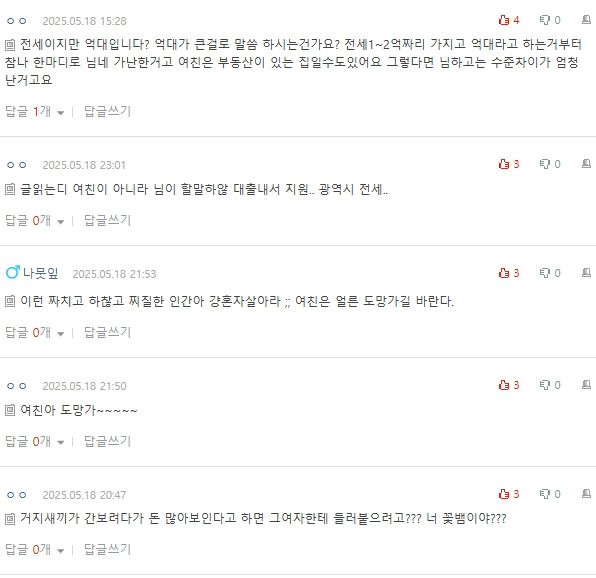 작성자보통보통 작성시간 25.06.04 여자분 헤어지세요