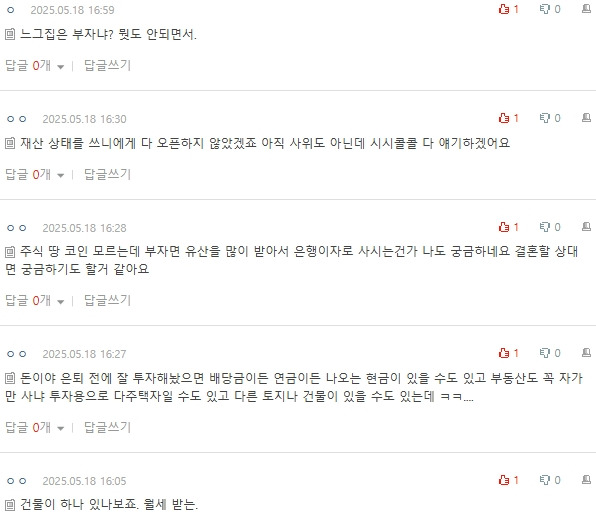 작성자푸라닭투움바 작성시간 25.06.04 결혼하려는 사인데 그런것도 못물어봐 근데? 내가 궁금한데ㅠ 임원일 하면서 많이 모아두셨나