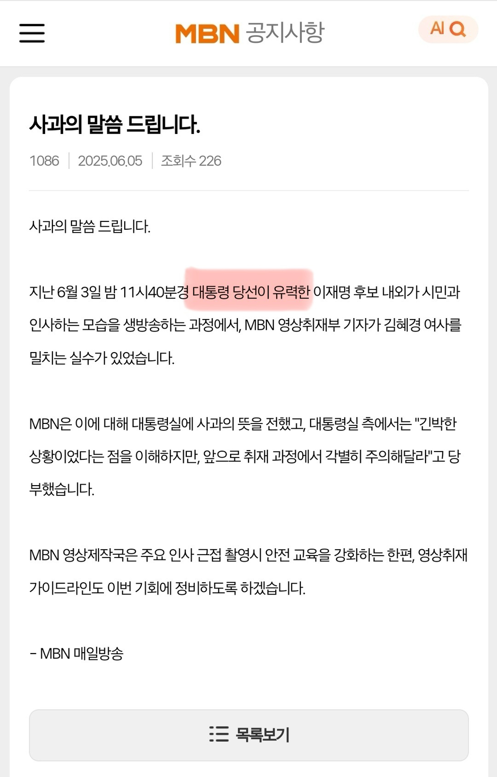 영부인님 꼬집고 밀쳤던 때도 당선 확실 뜨고 난 직후 상황이고 쟤네 사과글은 이미 대통령 선서식까지 마치고 대통령이 된 후인 오늘 올린 사과문인데도 대통령이라고 적지 않음