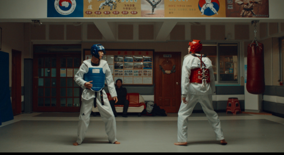 여기는 경상도 하성시 다참마을의 도회 태권도,