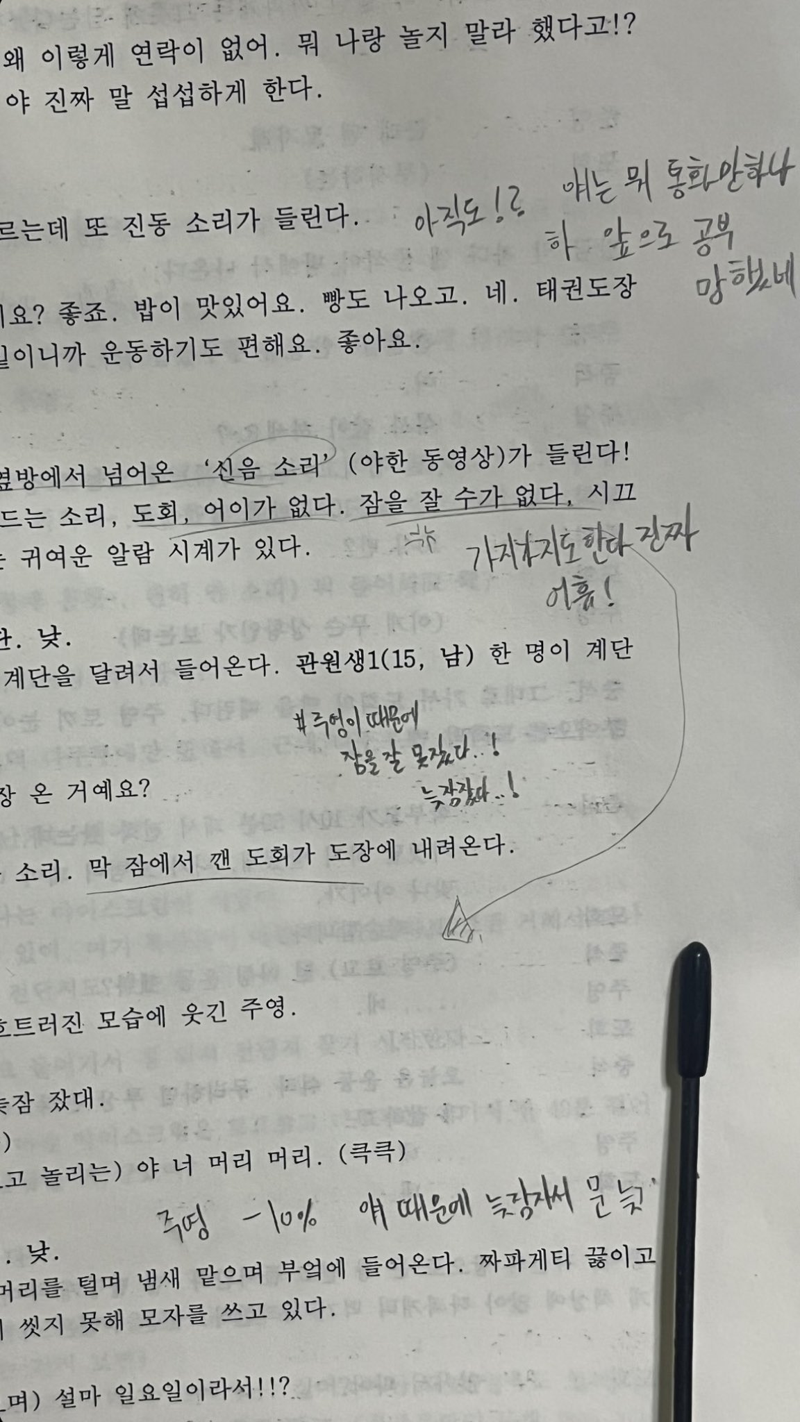 아니 늦게까지 공부 마치고 도회 잠 좀 자려는데
