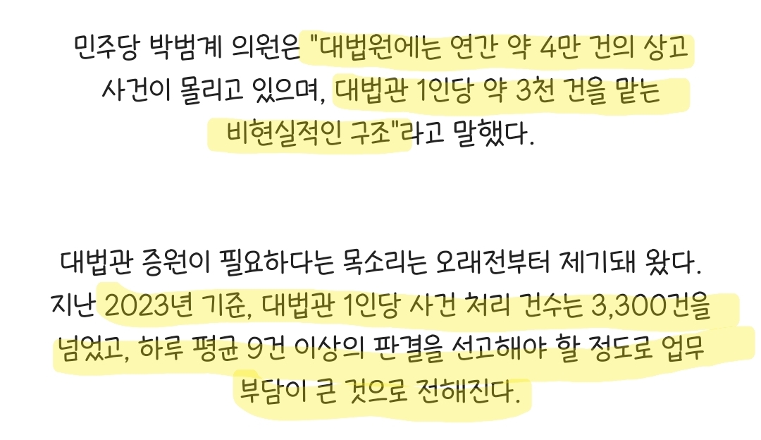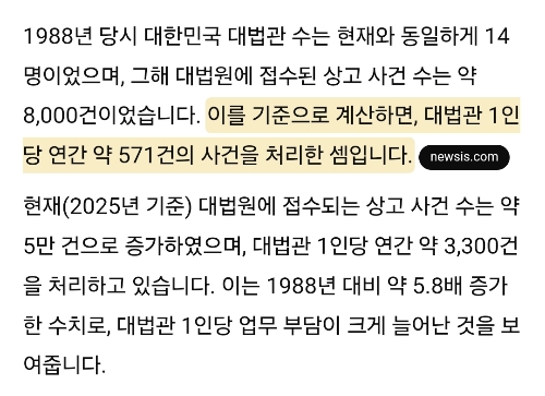 3. 과도한 업무량 : 대법관 1인당 연간 약 3,300~4,500건을 처리해야 하는 비현실적 구조